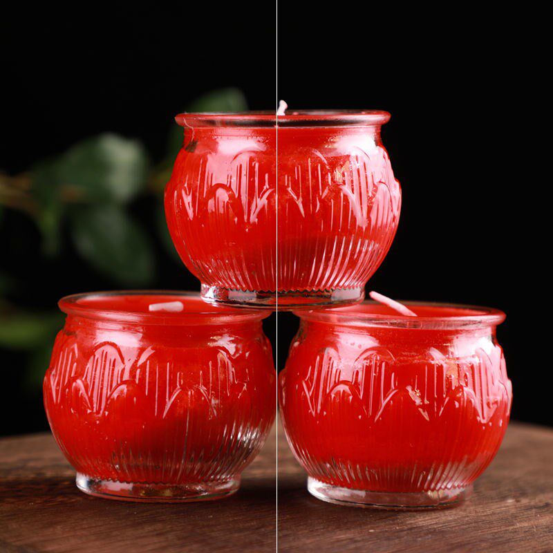 Lotus butter lamp 24 hours flat mouth lotus long bright lamp Buddha front for lamp smokeless Buddha lamp household glass candle