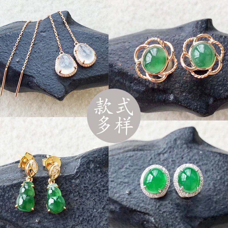 Natural a goods jadeite ring men's and women's ice ring face bare stone inlaid 18k hand chisel ear needle custom processing egg surface