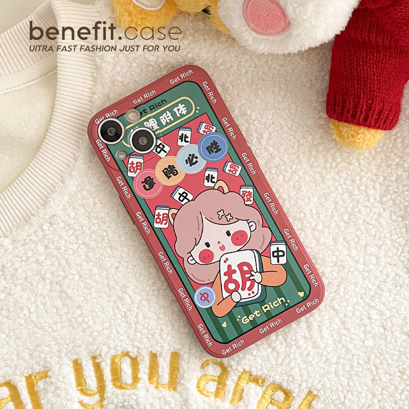 Benefit New Year Mahjong Girl Applies Apple 13 promax Phone Case Retro iPhone 12mini Couple 14 promax Silicone 11xsma