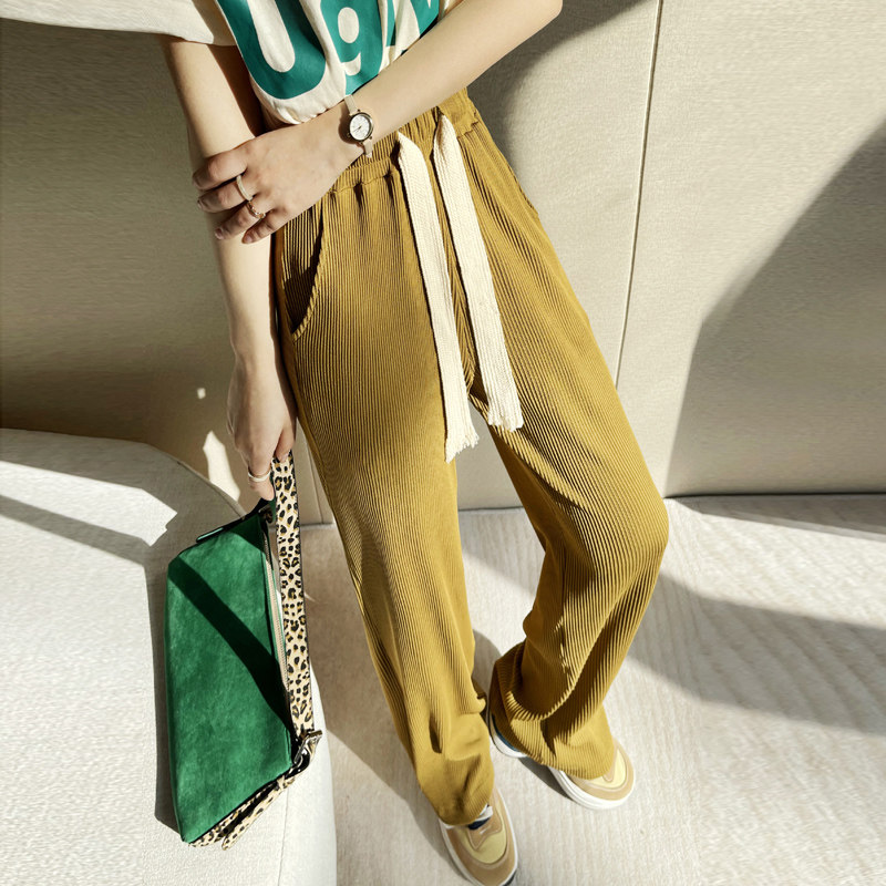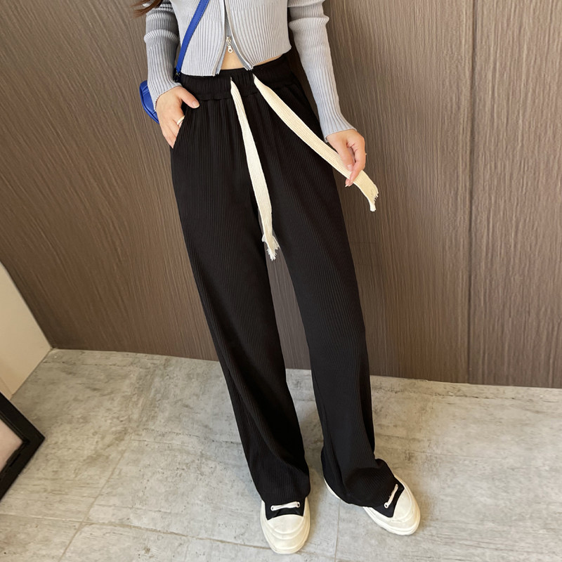 Draw rope Broadlegged Pants Woman Spring Autumn 2022 New High Waist Pituality Loose Straight Drum Black Casual Lazy Tug Panty Pants