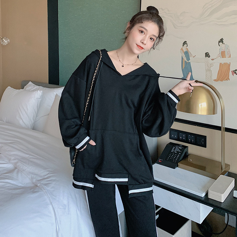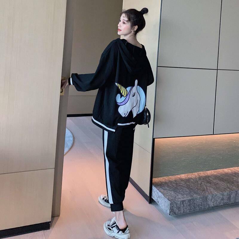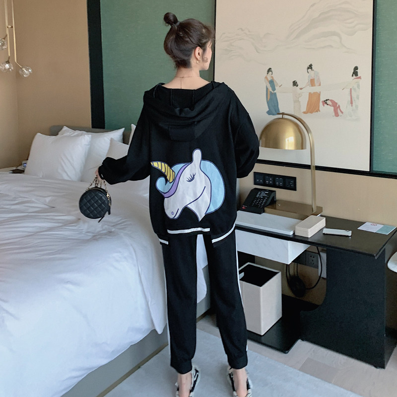 Net red spring maternity suit fashion 2022 spring and autumn new loose cartoon printing thick cotton T two-piece set