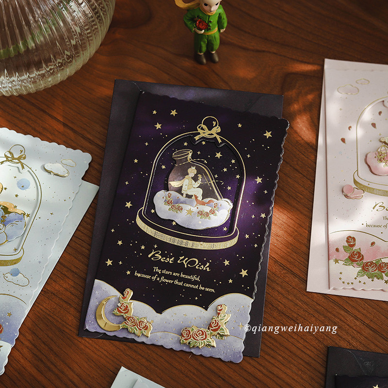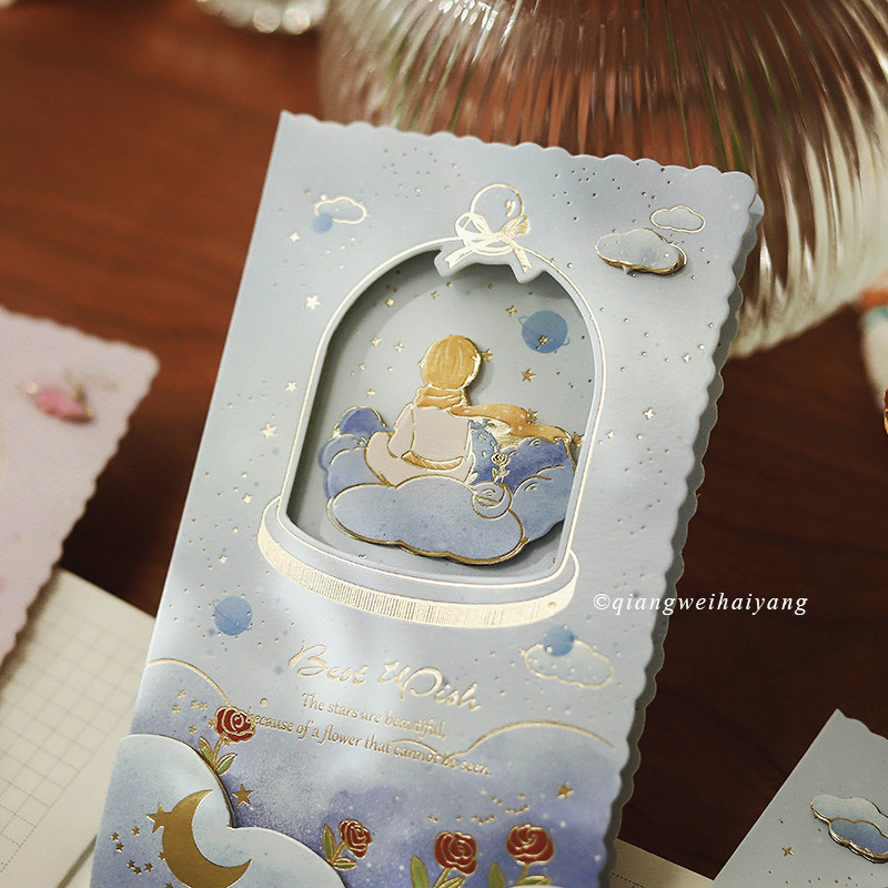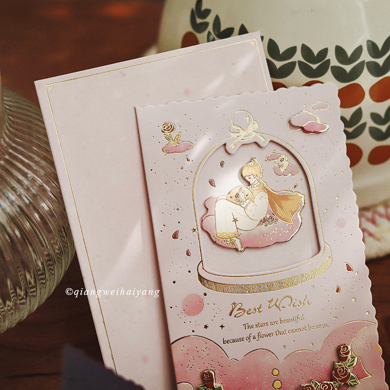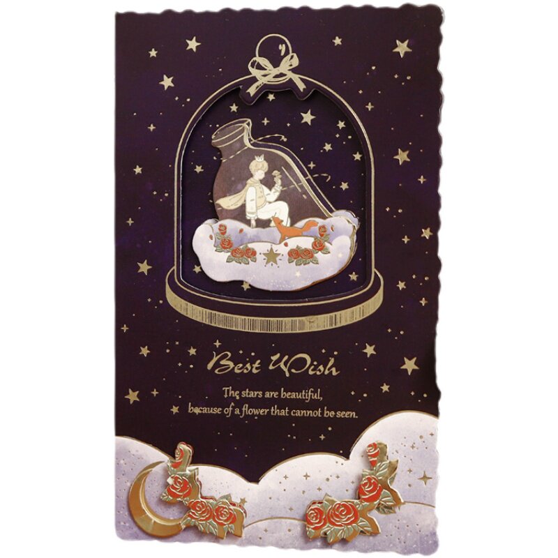 Rosary Ocean Little Prince bronzing gold folding greeting card You are my rose stereo hollowed-out blessing card