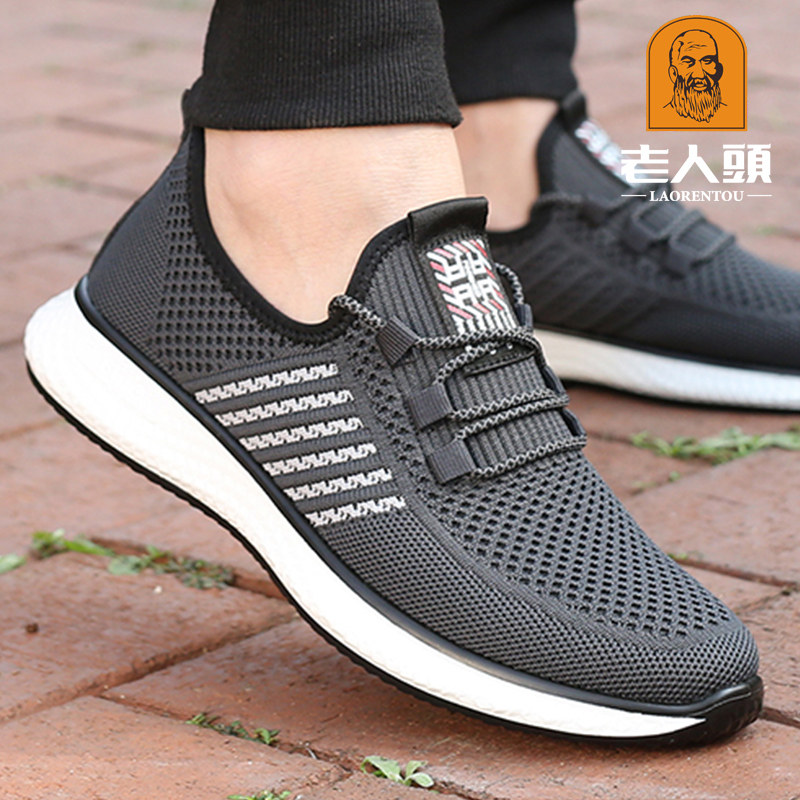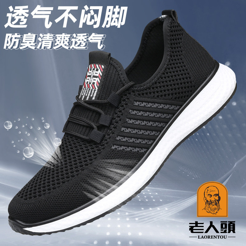 Old man's head mesh shoes men's light and comfortable casual shoes deodorant 2022 spring men's soft bottom fly woven mesh sneakers