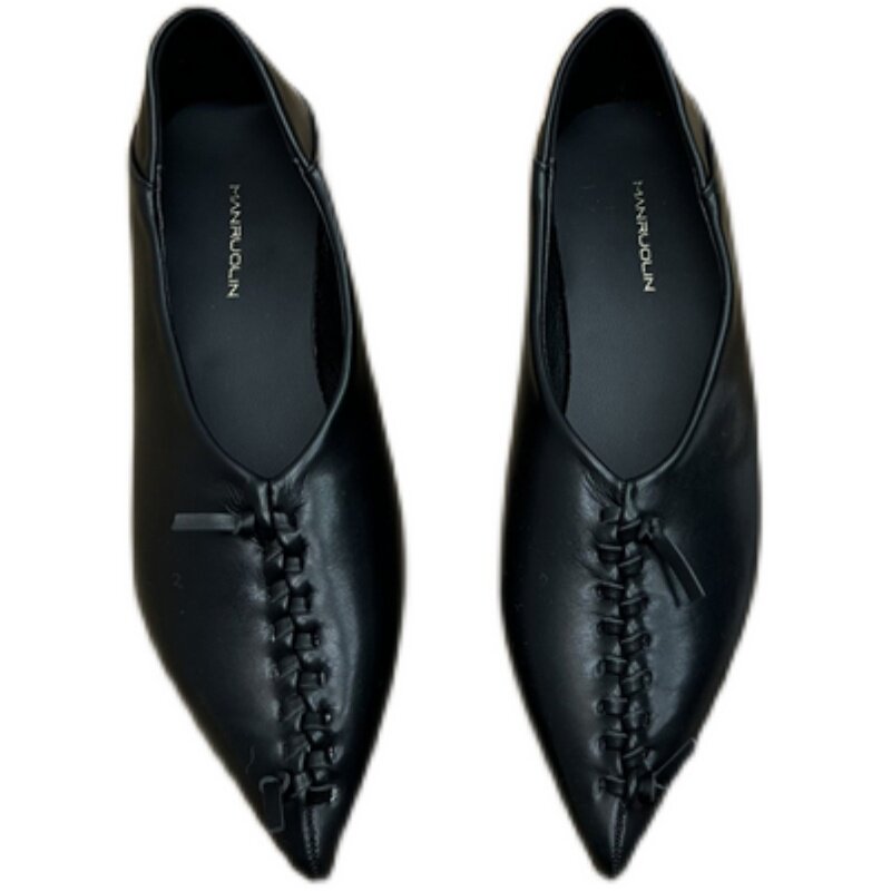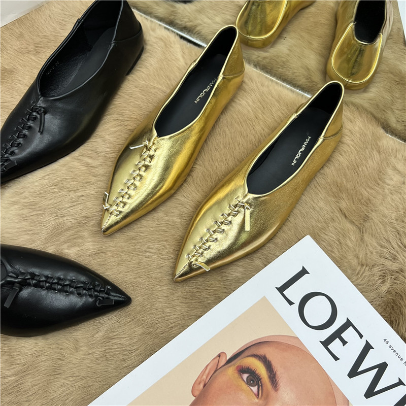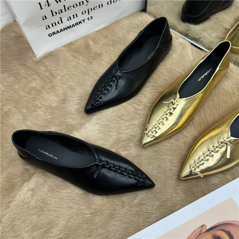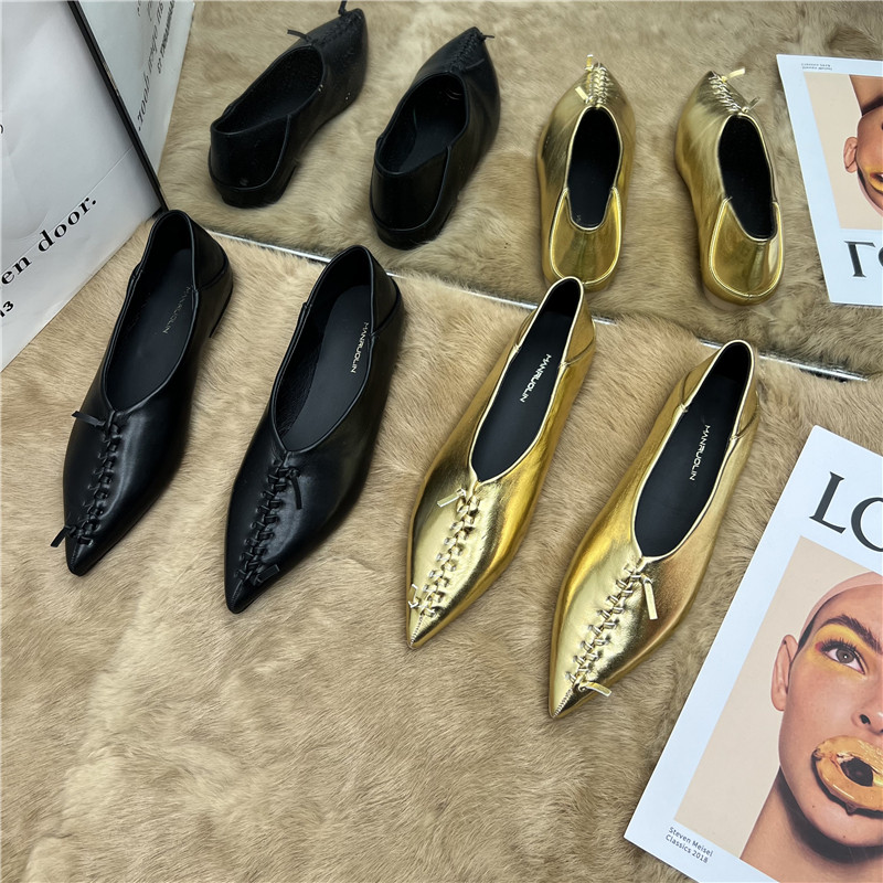 Pointed Weave Flat Bottom Bean Bean Shoes Spring New Golden Soft Leather Two Wear Heels Slippers Soft Bottom 100 Hitch Women's Single Shoes