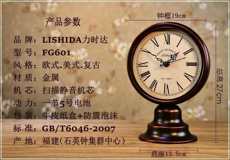 Desktop antique American muted seat clock home living room clock Eurostyle desktop bedside desk small watch swing piece