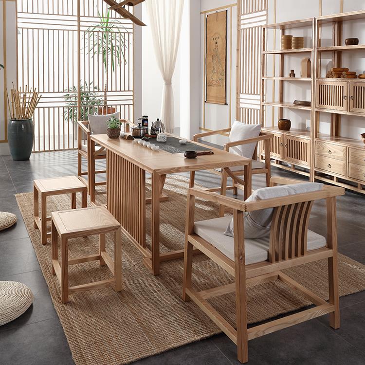 New Chinese style tea table simple coffee table kung fu tea table Zen solid wood tea table and chair combination tea house club furniture