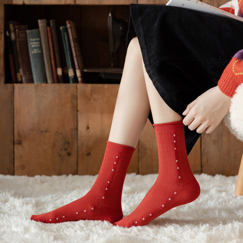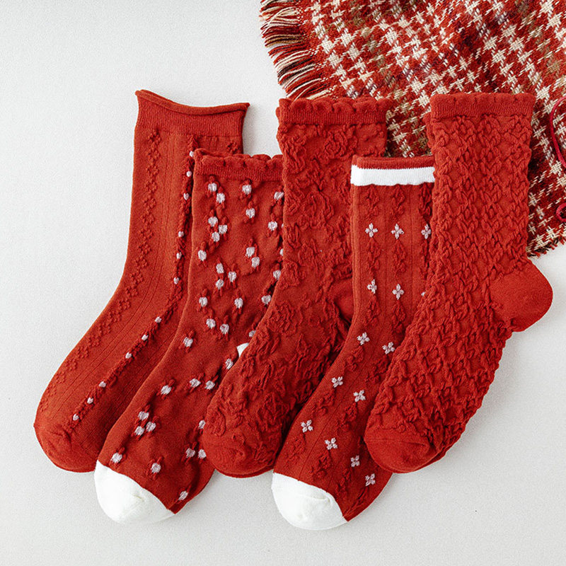Nut mommy red socks female spring and autumn new year big red socks birth year marriage festive cotton socks