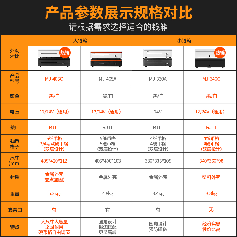 405C white large cash box (double thickened) 12V-24V general 405C black large cash box (double thickened) 12V-24V general 405A orange white large cash box