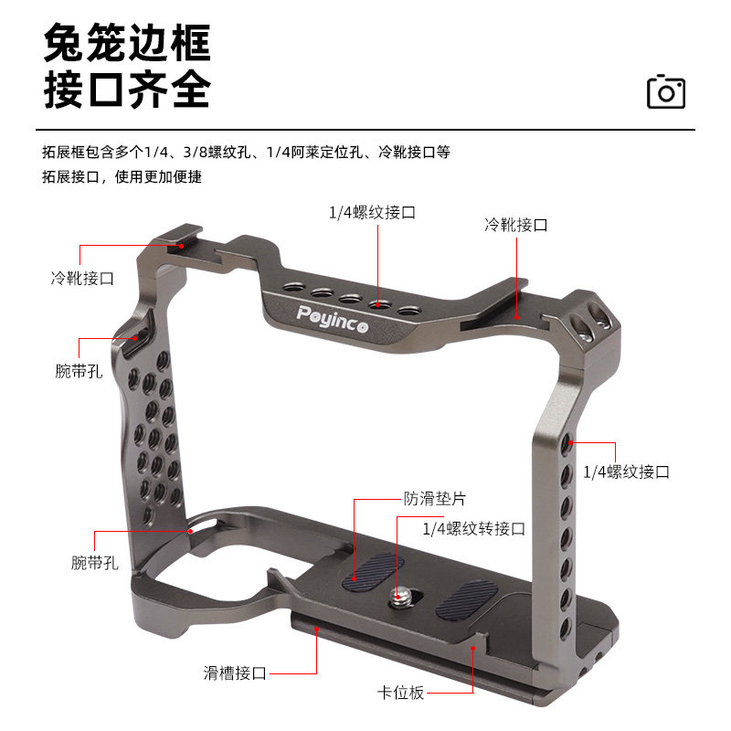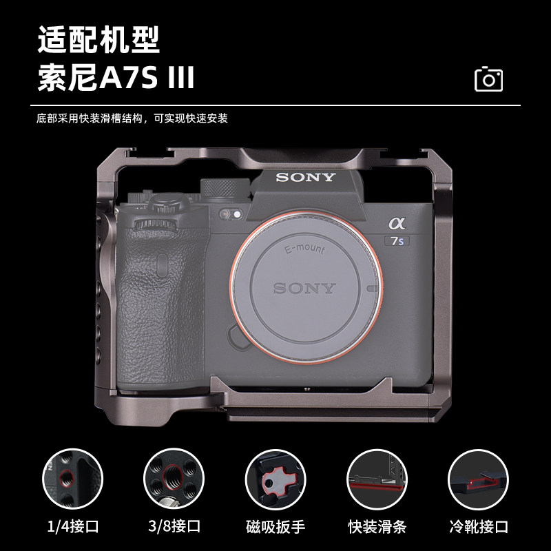 Auxiliary shadow suitable for Sony A7S3 single-eye camera rabbit cage metal full body expansion vertical clapboard accessories sony a7s3 video live expansion body metal accessories