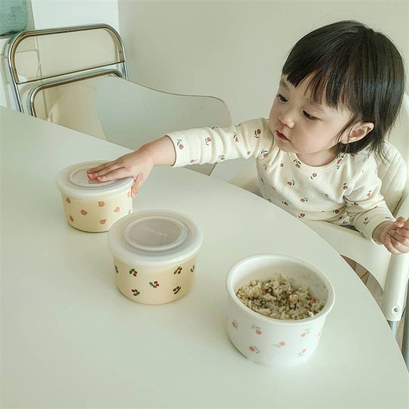 ins baby insulation food supplement bowl baby learning to eat ceramic portable silicone fork spoon children self-eating tableware