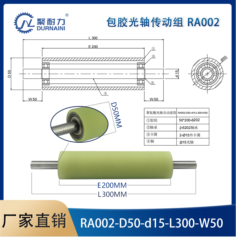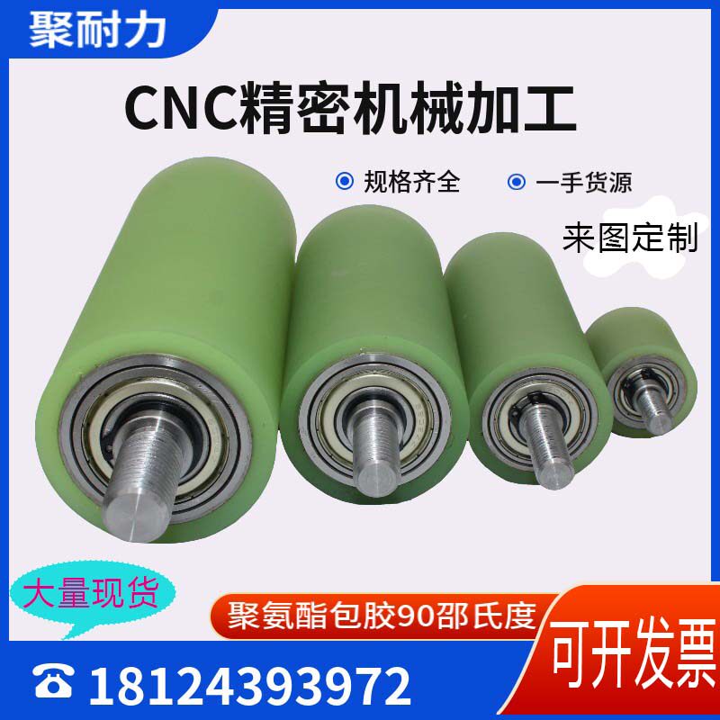Spot double-headed tooth conveyor belt roller with shaft core polyurethane double-bearing rubber wheel unpowered roller mute wear-resistant