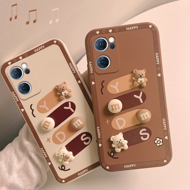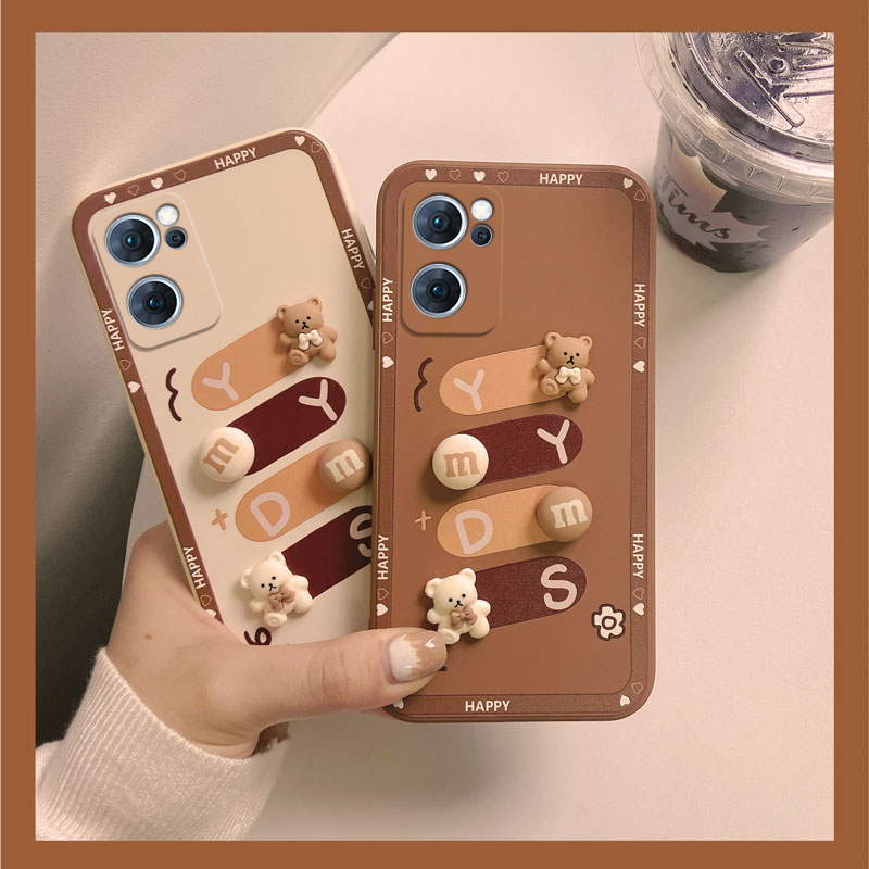 Caramel brown border bear opporeno7 mobile phone protective case oppo reno7pro protective case reno7se shell por liquid silicone 5g version all-inclusive defense