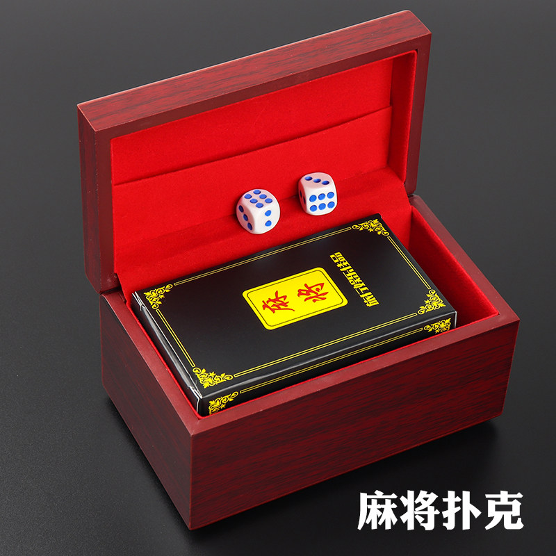 Mahjong Poker solid wood collection box sends dice 2 grains
