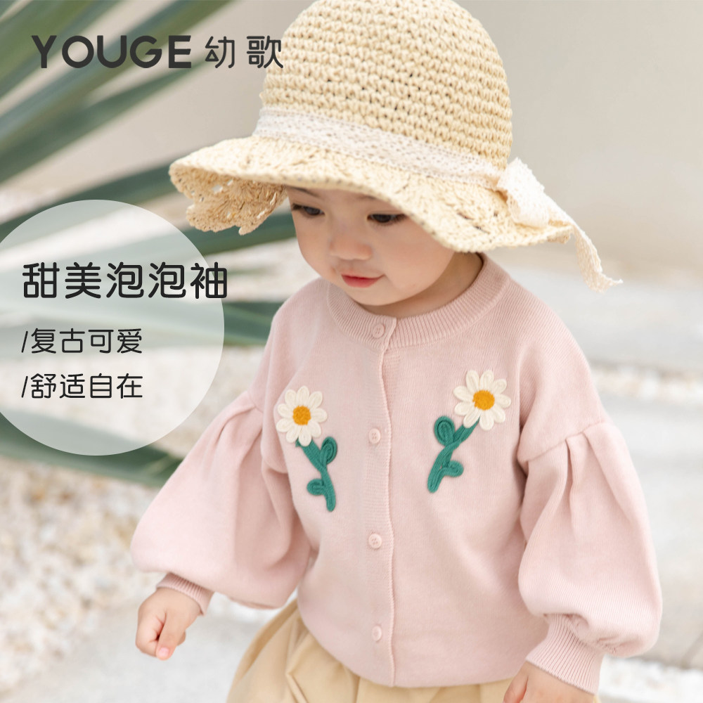 Youge Young Song Infant Son Ensemble Sweet knit cardiovert spring autumn new baby Lotattoo comfortable climbing sweater