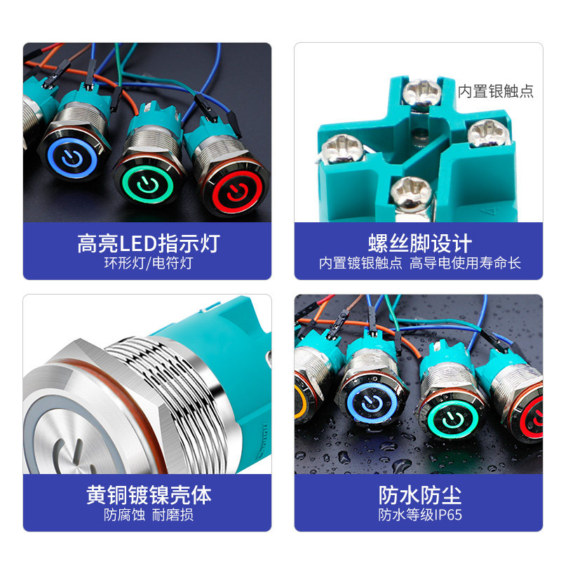 metal button reset no light metal button self-lock no lamp reset ring lamp red light 9-24V reset ring light green 9-24V reset ring light blue light 9-24V self-lock ring light red light 9