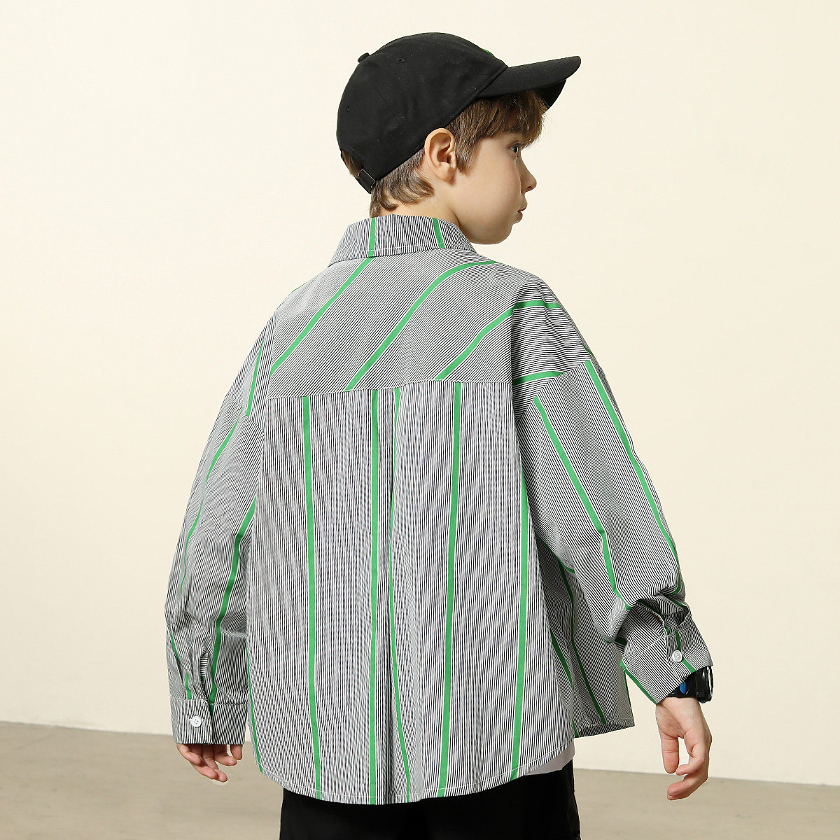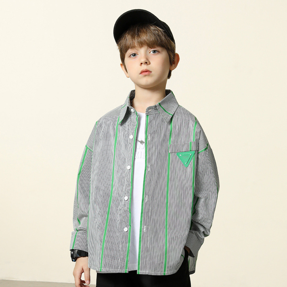 Schwartz Dress Children Striped Shirt 2022 CUHK Boy loose Boy Leisure Long sleeves Shirt Jacket Tide