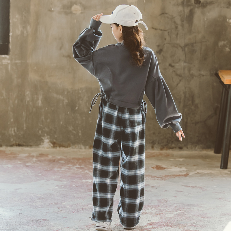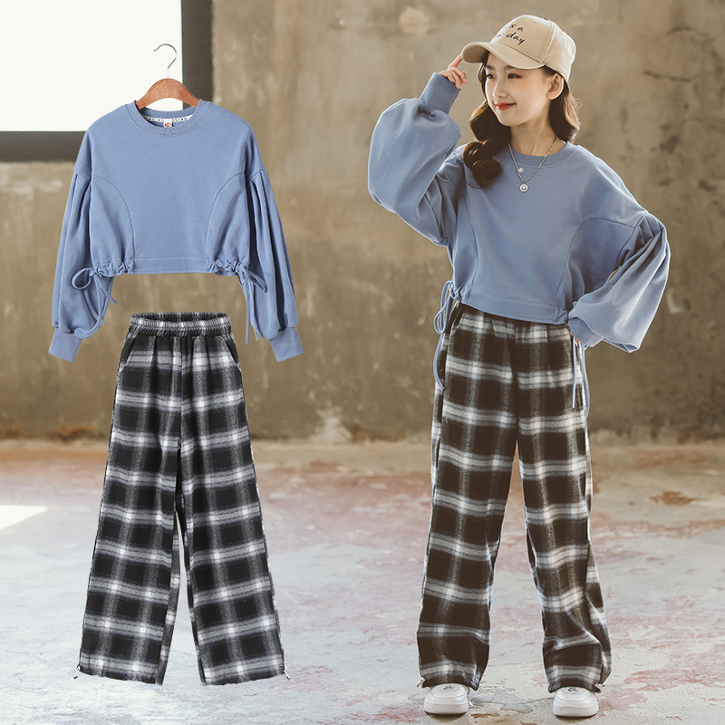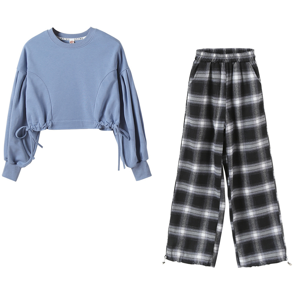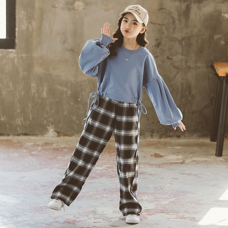 New plaid long pants CUHK Girl girl suit Korean version Qiuyu Winter girl Wei clothing Leisure 2 style