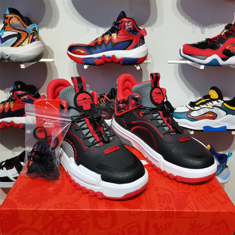 Li Ning children's shoes 2022 spring new teenage boys and girls middle-top casual breathable sports shoes YKCS012