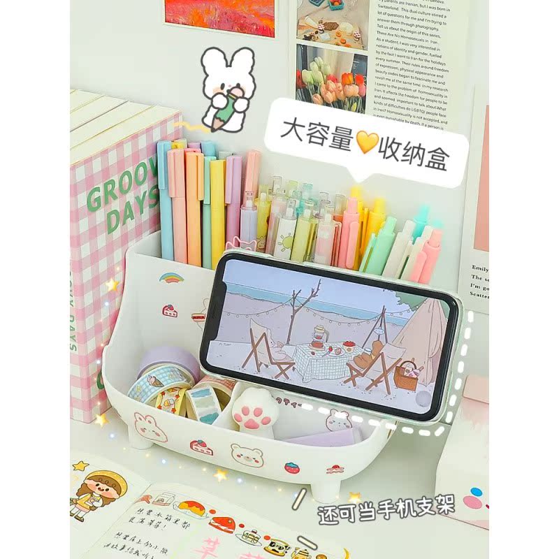 Cute creative pen container student desktop large capacity children girls multi-functional office stationery storage box