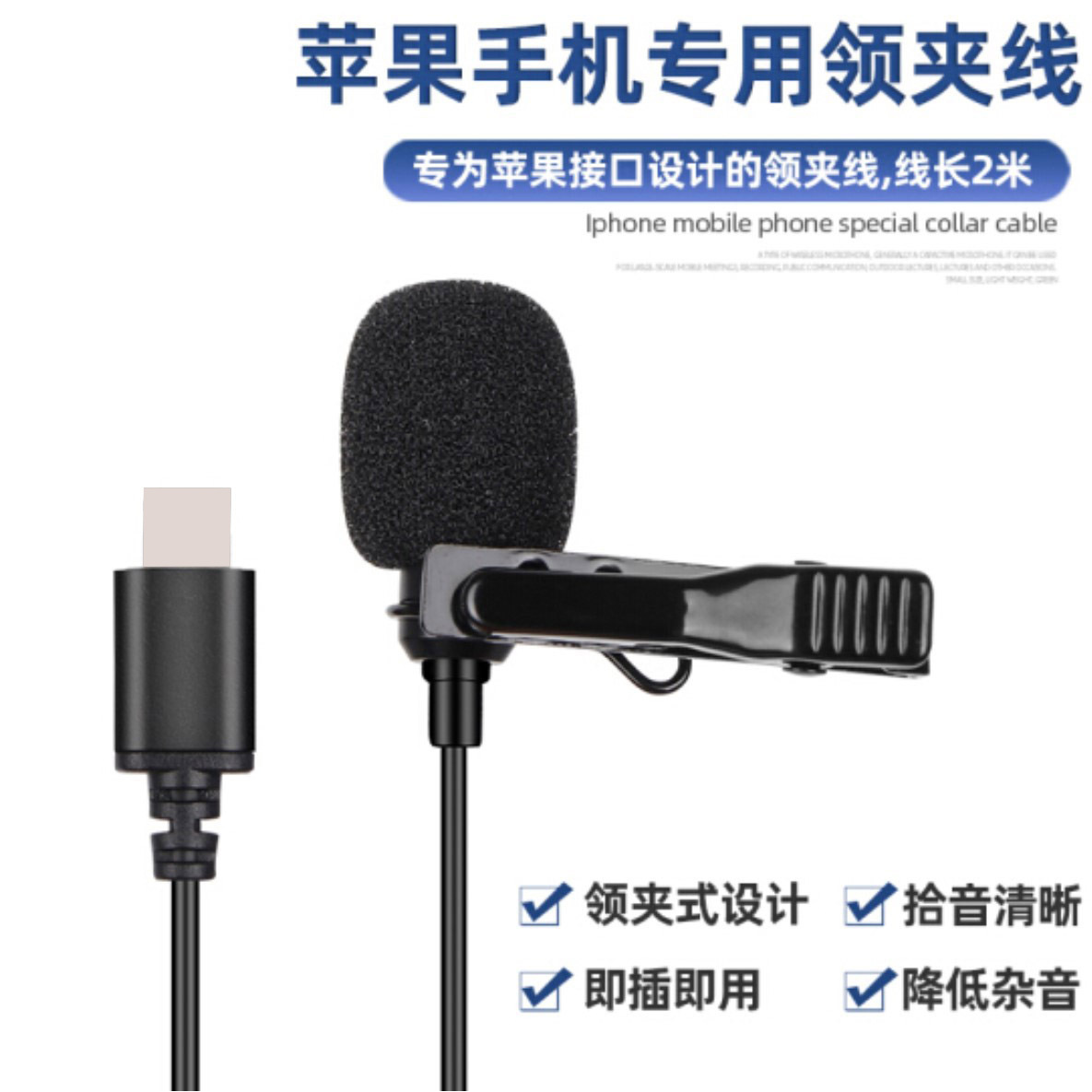 Black mobile phone external live vibrato lavalier microphone suitable for Apple type-c Android mobile phone small microphone