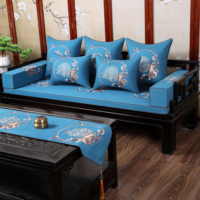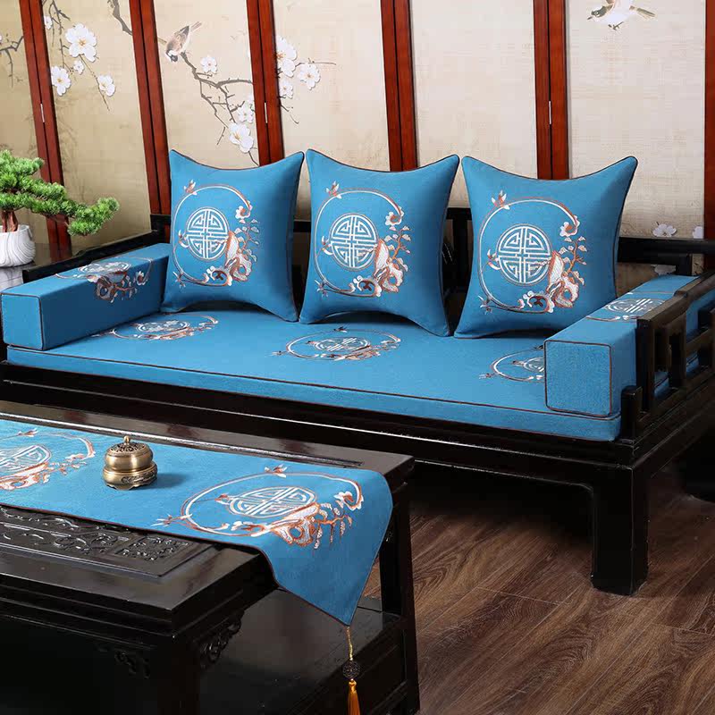 Mahogany sofa cushion embroidery four seasons universal non-slip Chinese sofa cushion furniture solid wood chair cushion customization