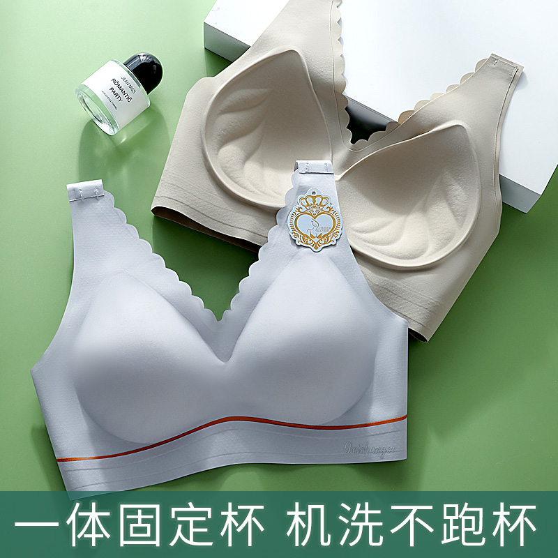Fixed cup no-mark underwear Female large code No steel ring one-piece bra Polymers to collect auxiliary milk Drooping Sports Underwear-Taobao