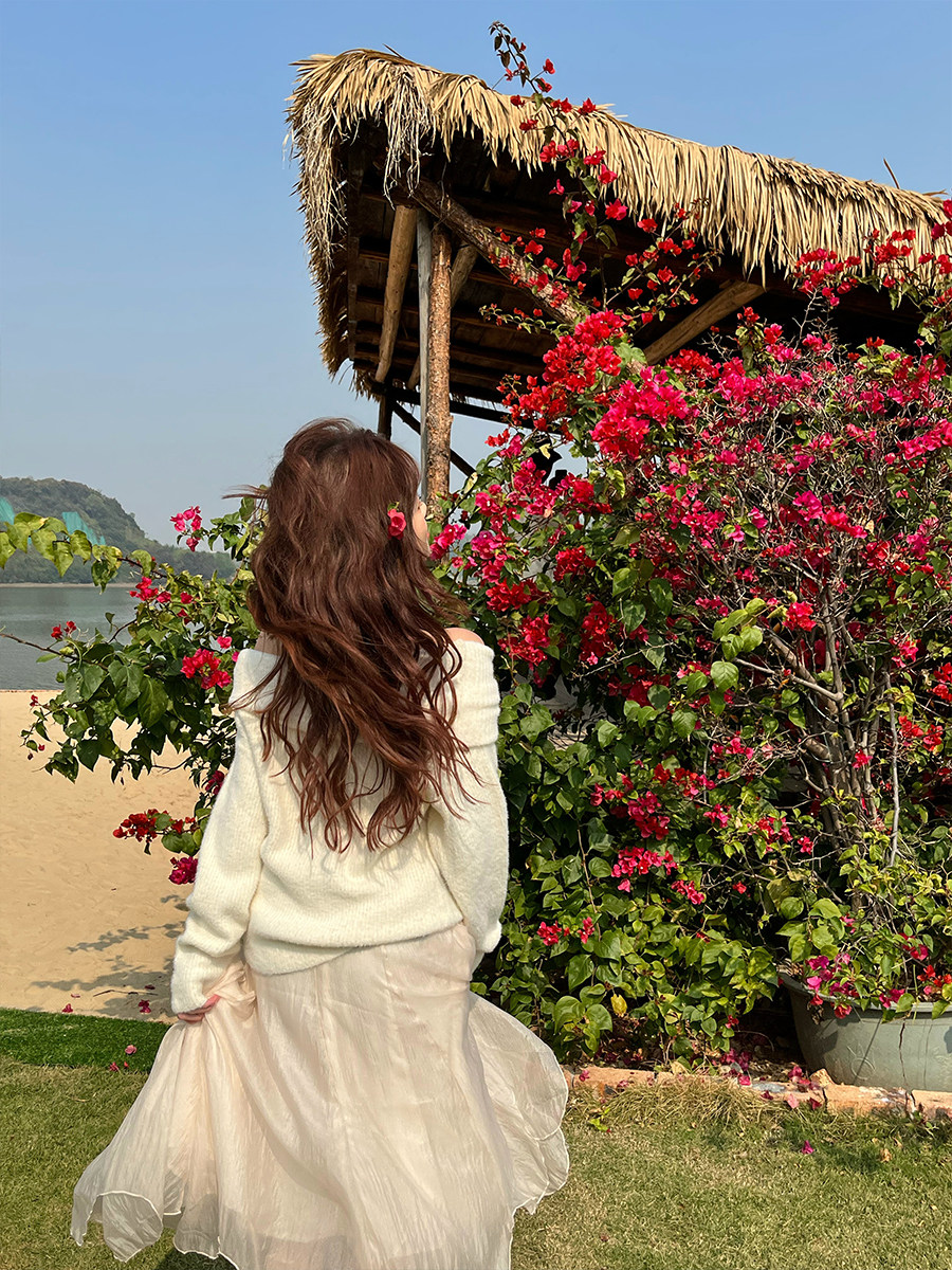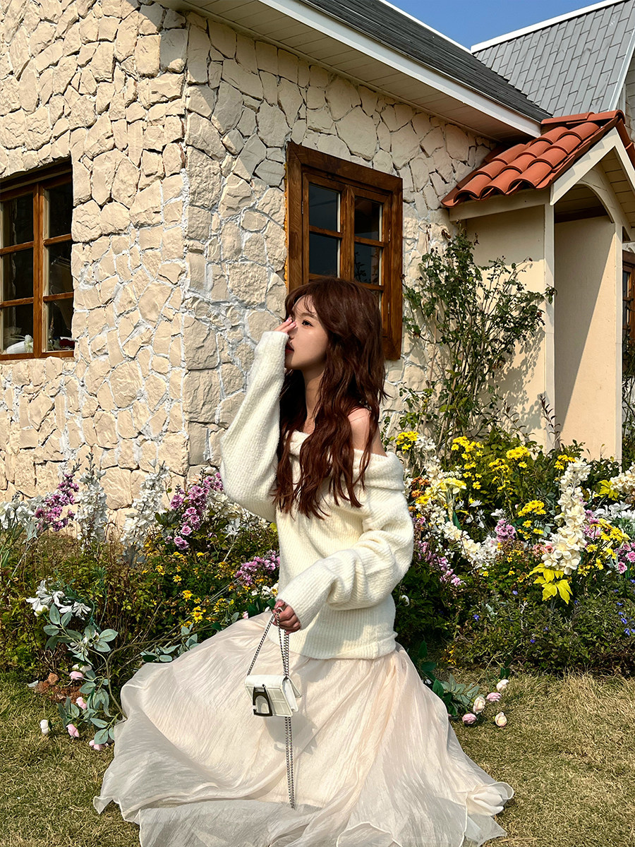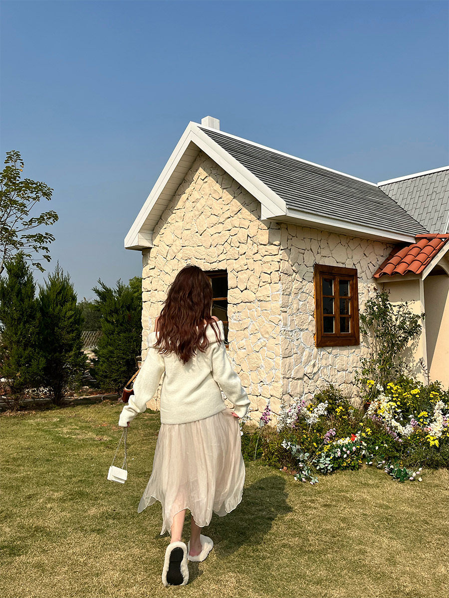 Today on gentle milky apricot color high waist a-line skirt women's mid-length irregular mesh skirt big swing umbrella skirt