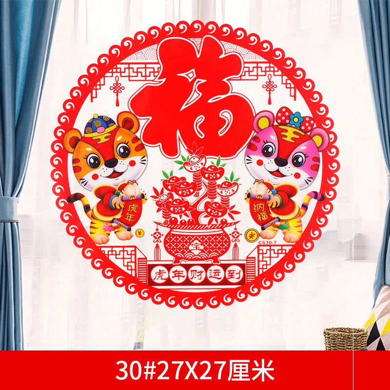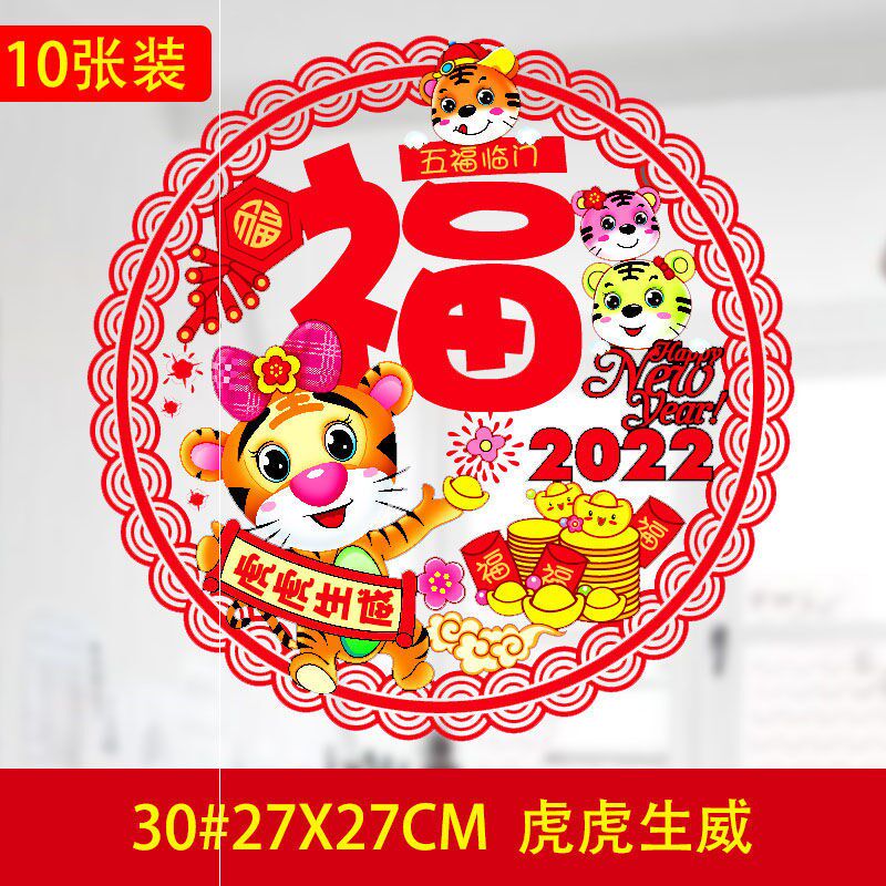 2022 Year of the Tiger New Year window stickers glass stickers electrostatic stickers New Year Spring Festival decoration supplies Fu word door stickers