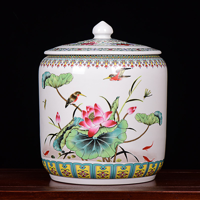Jingdezhen Ceramic Ware Tea Leaves Jar Tea Cake Jar Storage Tank Large Wake Tea Home Rice Vat Oil Deposit Tea Big Jar