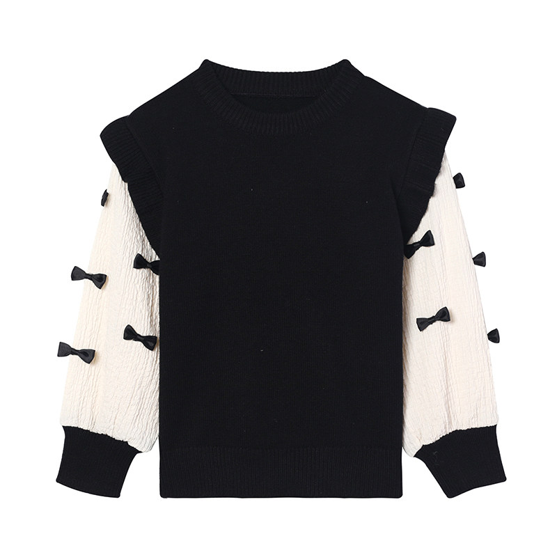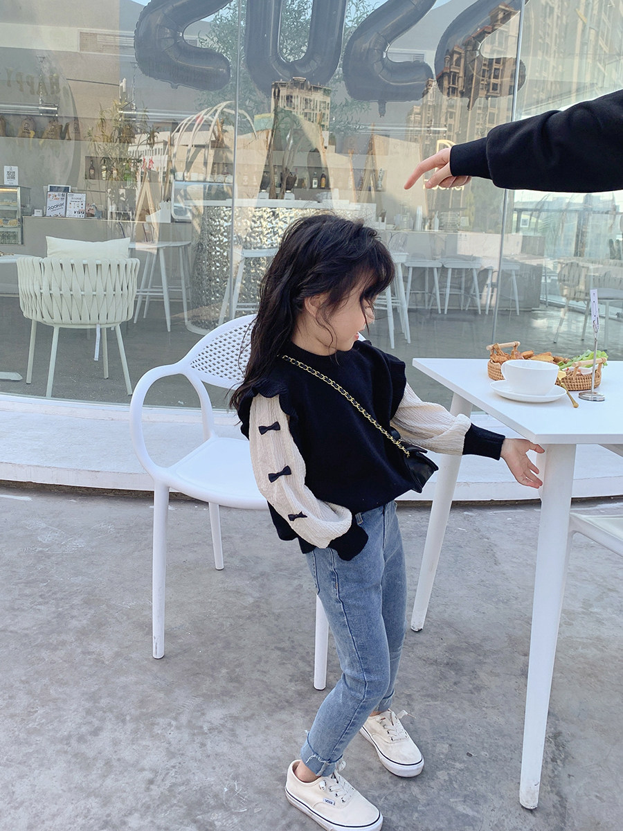 Cream KIDS girl sweaters splicing fake two-pin weaters 2022 Spring and autumn new foreign send baby hooded boomer