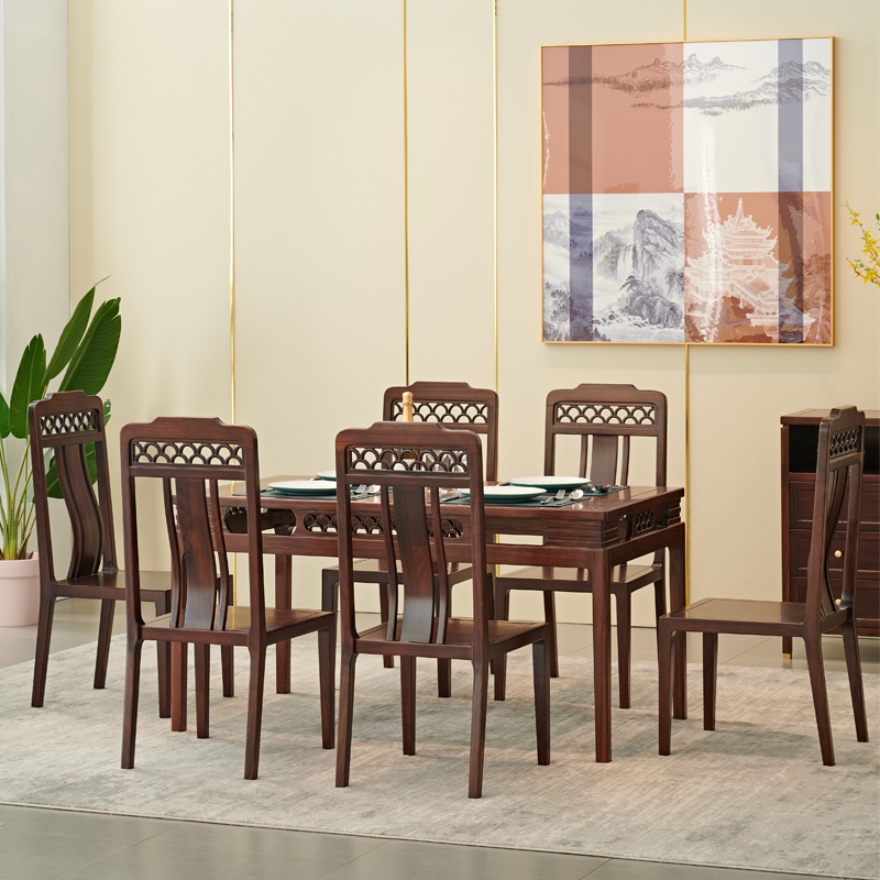 New Chinese Ukim Wood Full Solid Wood Dining Table And Chairs Combined Rectangular High-end Dining Table Hotel Home Dining Table And Chairs