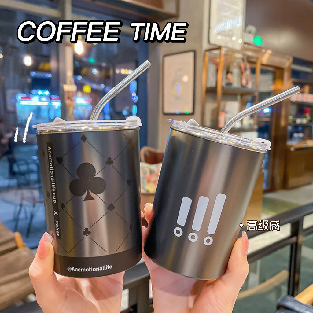 Poker Stainless Steel Straw Cup Zebra Pattern Stainless Steel Straw Cup Gray Exclamation Mark Stainless Steel Straw Cup Gray Stripe Stainless Steel Straw Cup Gray Water Bar Stainless Steel Straw Cup White Time Stainless Steel Straw Cup White