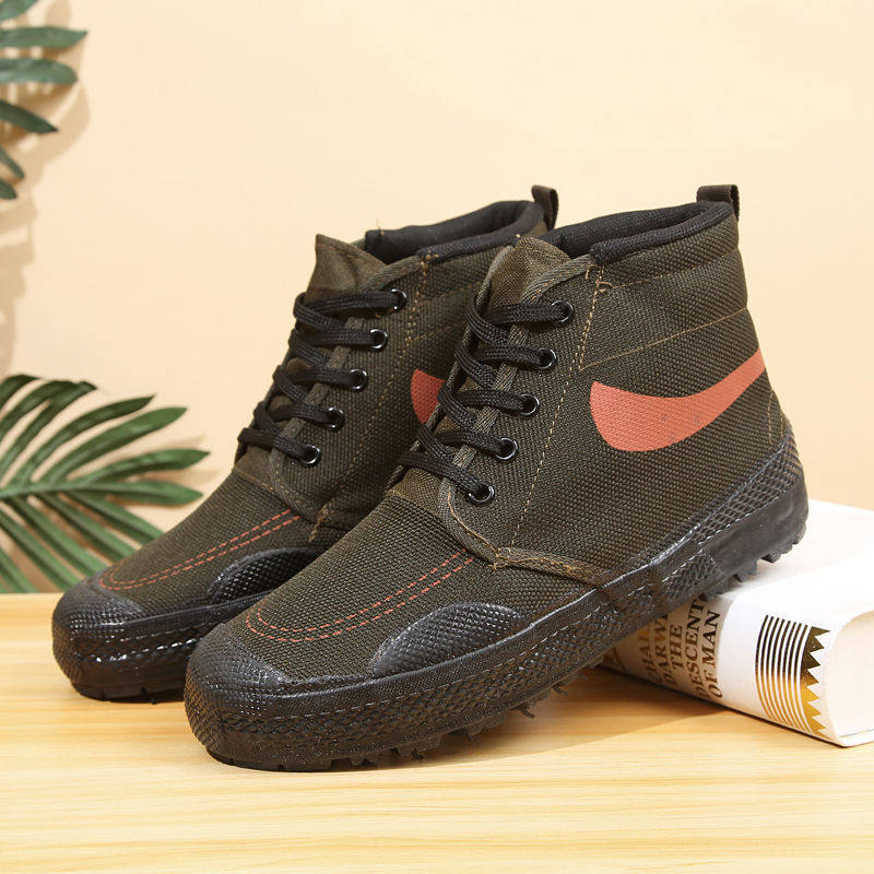 Spring men's shoes labor insurance shoes breathable high tube black construction shoes wear-resistant non-slip liberation shoes rubber shoes migrant workers canvas shoes