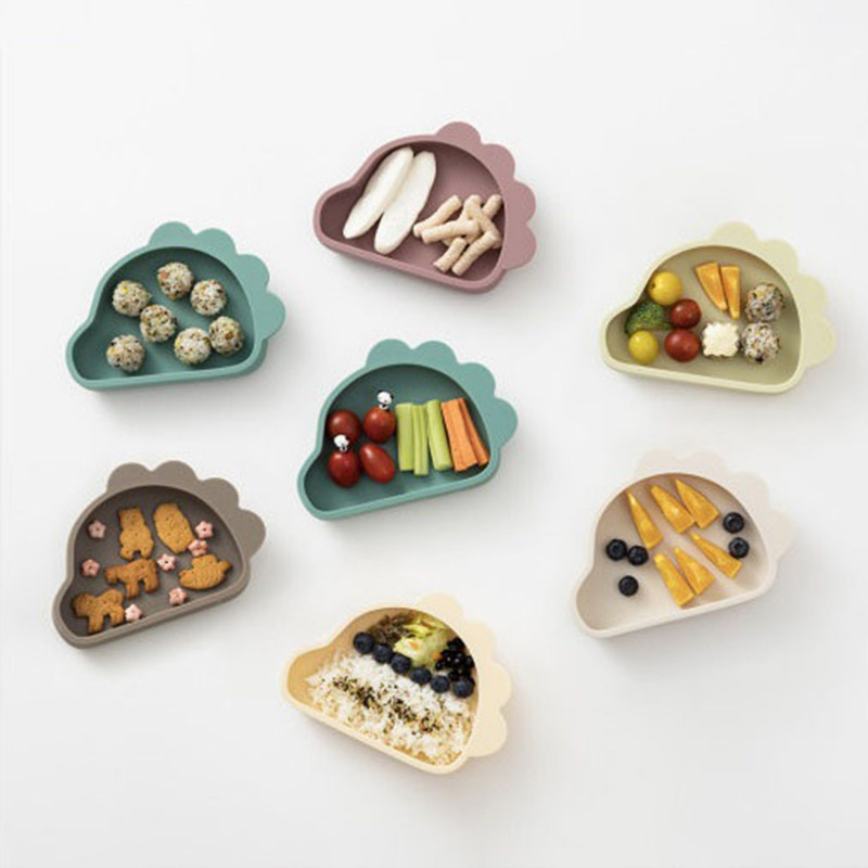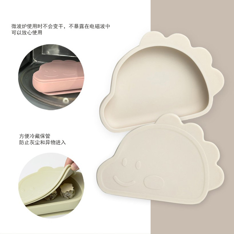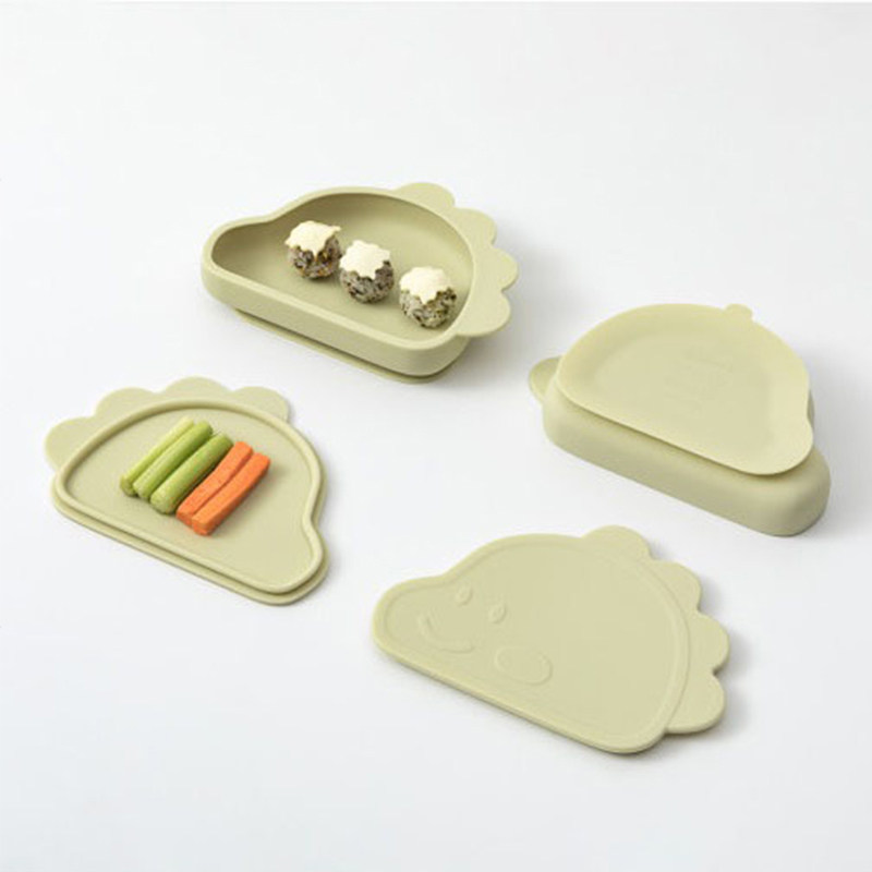 Korea modui baby dinner plate children's silicone sucker bowl non-staple food bowl with lid small dinosaur cartoon cute shape