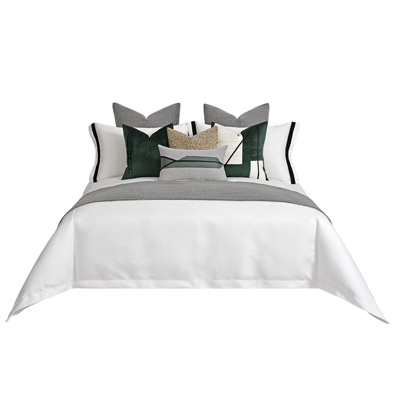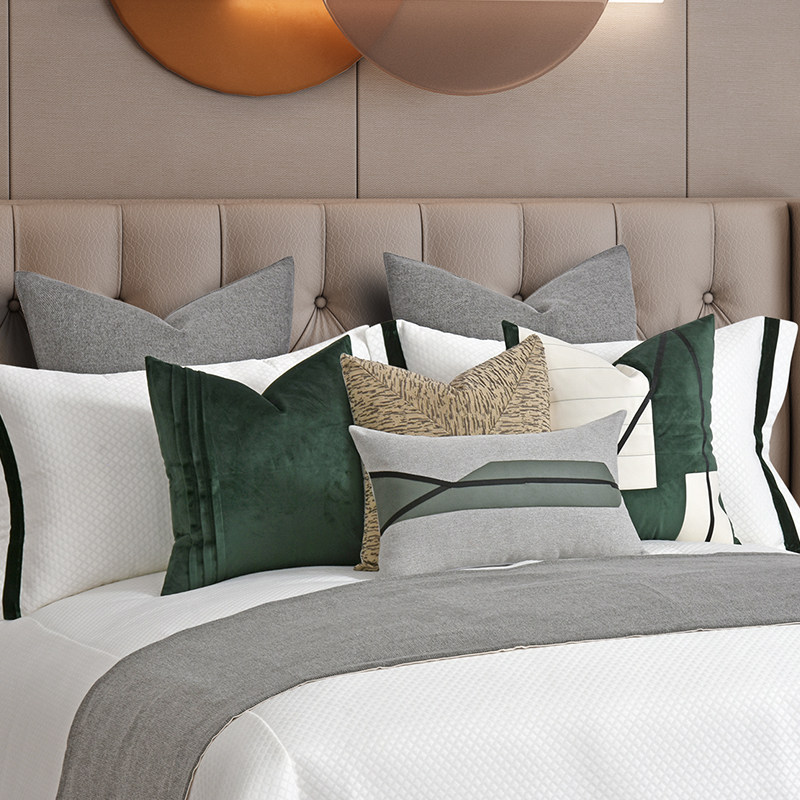 In 2022, the new listing of Li's Home Hall, black and white gray with green design model room, home showroom bedding