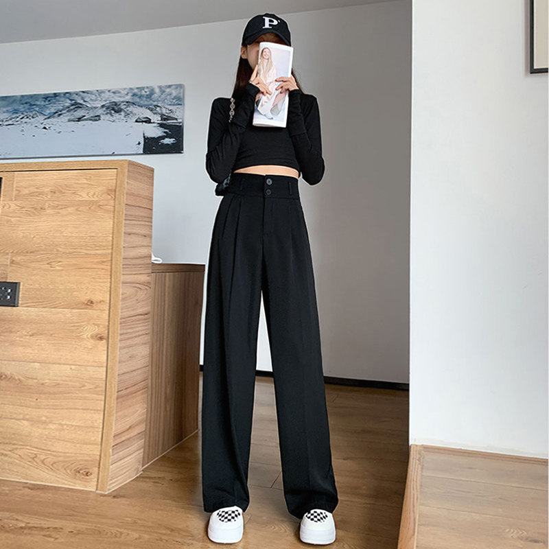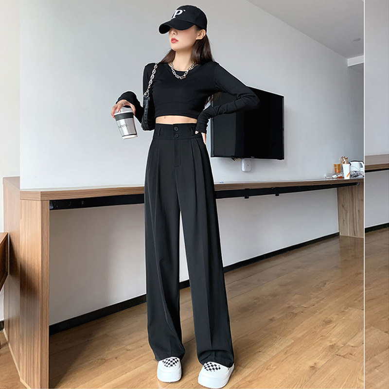 Pear-shaped stature ice silk broadlegged pants female summer slim fit with high waist pituality weight mm large size slim fit slim fit straight fit pants spring autumn