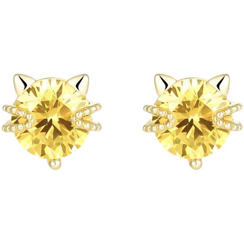 New Year's new earrings sparkling small tiger head cute and delicate and small kitty head zircons earrings without earbuds