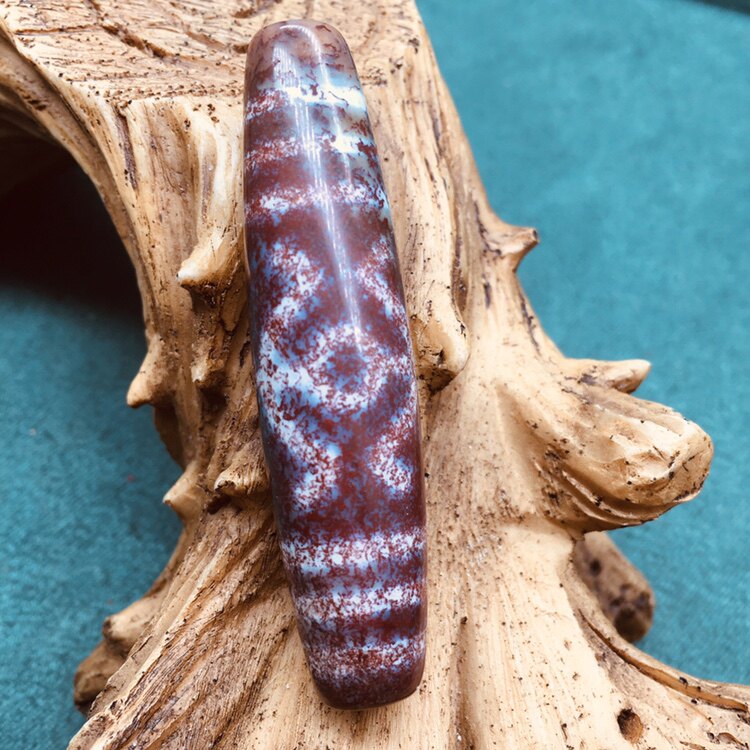 Natural Tibetan Tibetan red-skinned Xiangxiong sky-falling stone nine-inch shale full of cinnabar double noble dzi bead pendant pendant