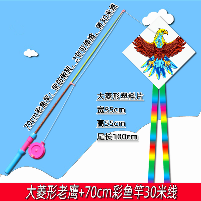 Milky white khaki white beige light gray large diamond mixed batch 40cm hand brake fishing rod 30m line big diamond mixed batch 60cm cartoon rod 30m line big diamond mixed batch 70cm