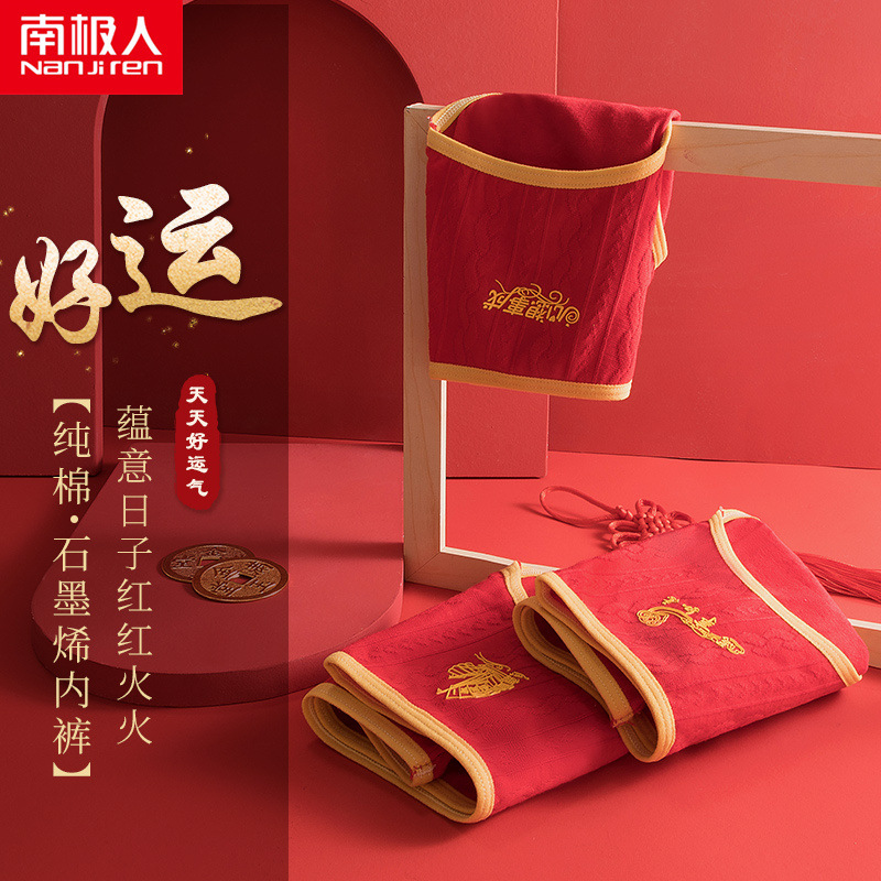 New big red women's underwear pure cotton graphene antibacterial bottom crotch natal year bridal underwear