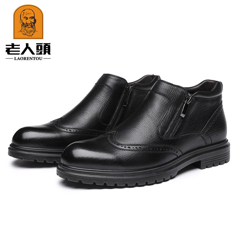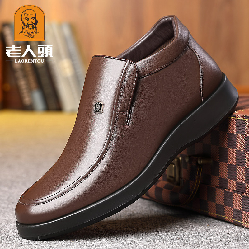 Old man's head cotton shoes men's broken code clearance winter plus velvet warm high-top leather shoes non-slip leather middle-aged dad shoes