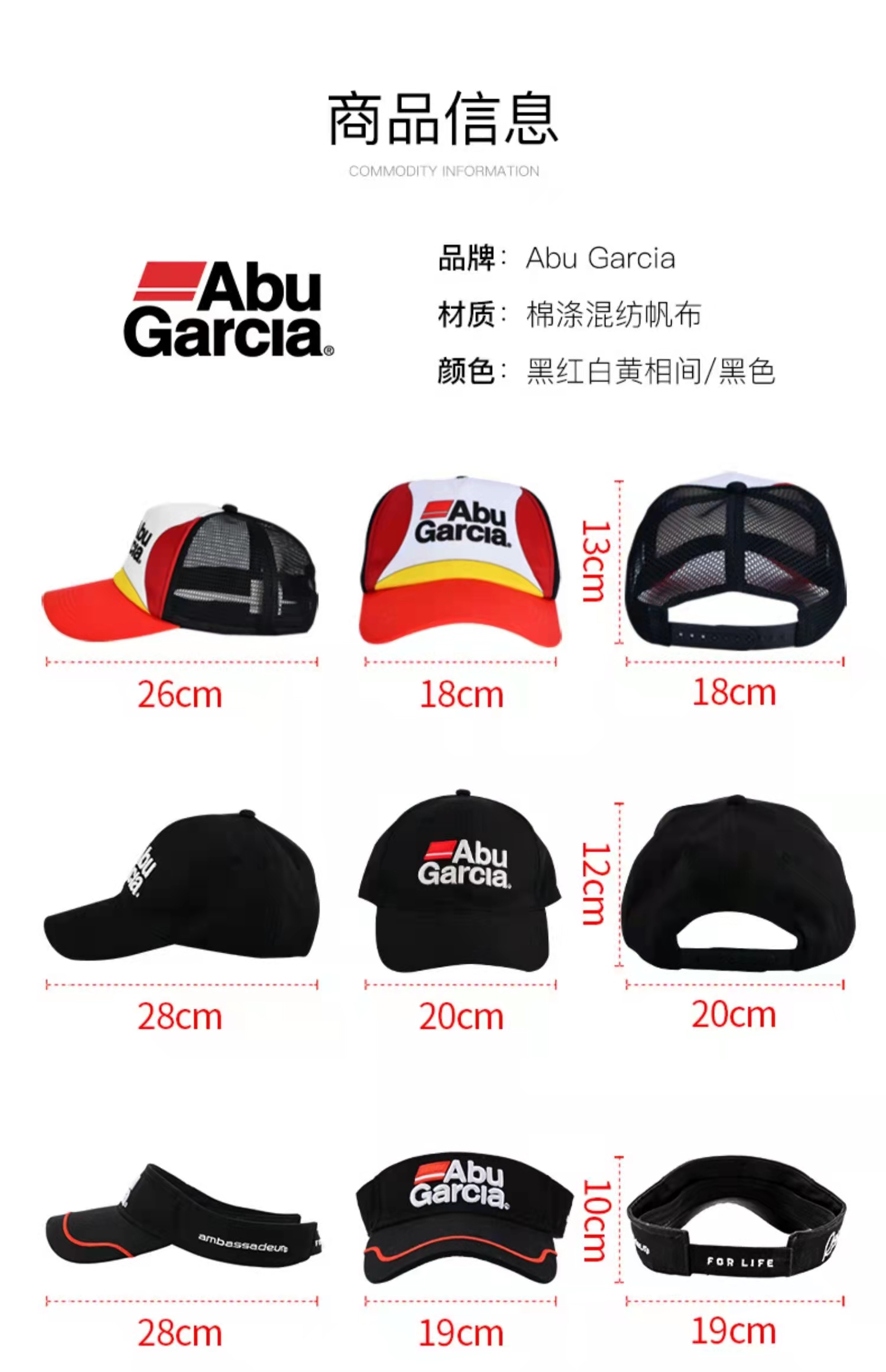 Abu sun cap, a red Abu sun cap, an orange Abu sun cap, a blue Abu sun cap, a gray Abu sun cap, a black Abu sun cap, a 100 commemorative edition