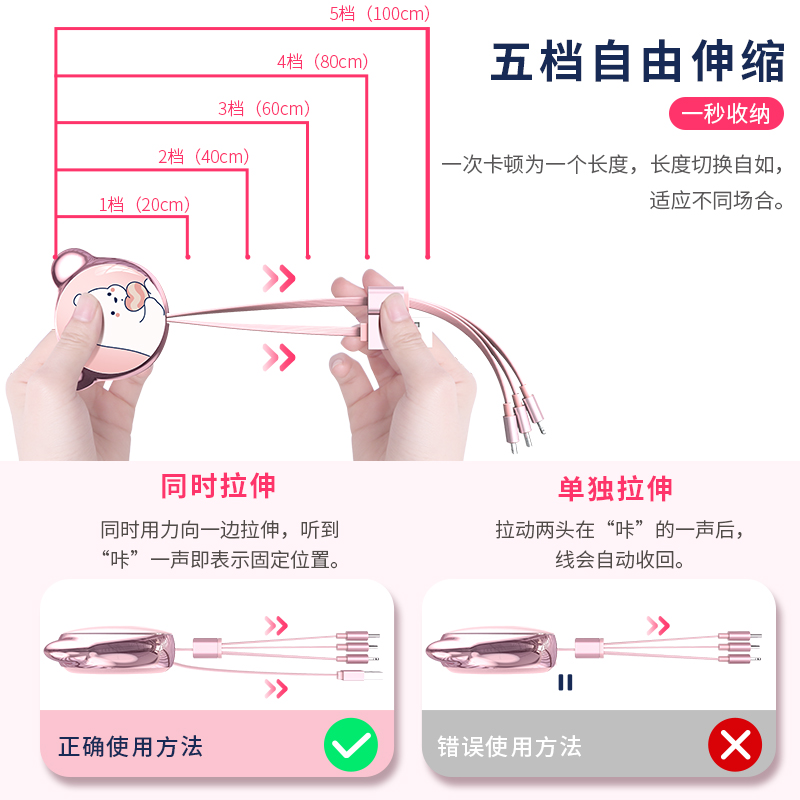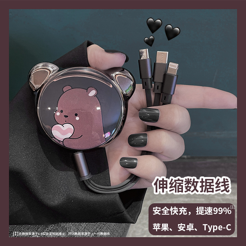 AIQaa one-drag three-data cable stretch three-in-one charging wire for Apple's car multi-functional Huawei mobile phone three-head oppo portable vivotypec cartoon personalized customization