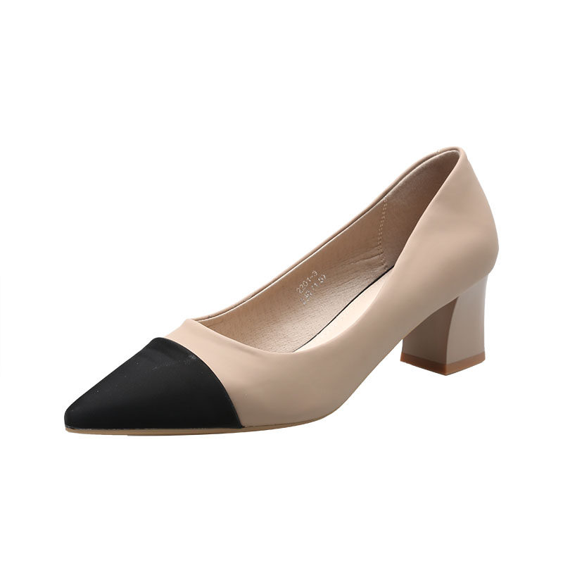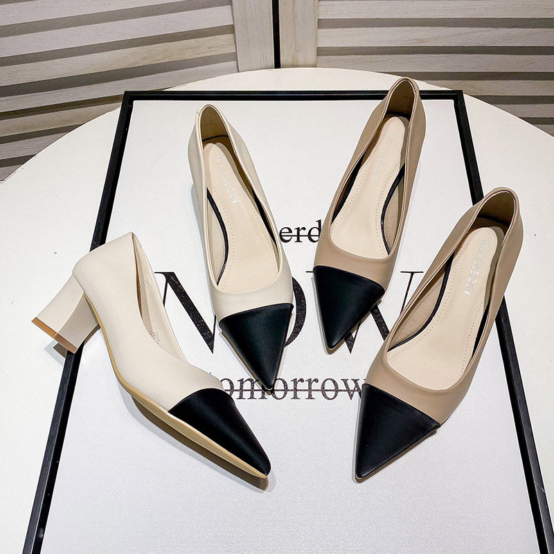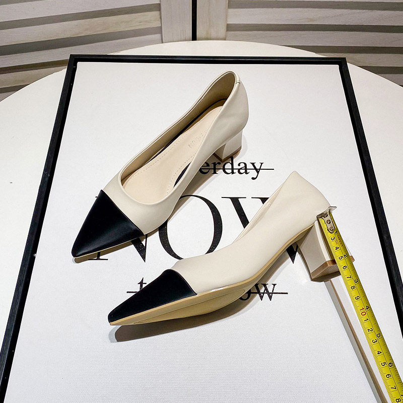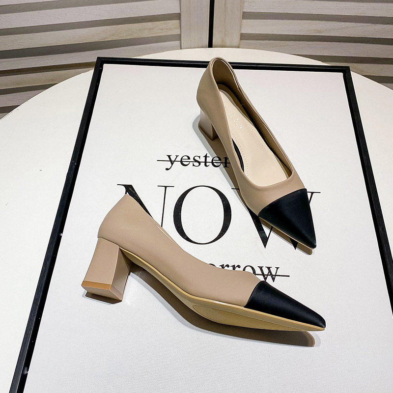 Uncle Jian's temperament of piece pointed shoes in 2022 Spring and Autumn New French high heels shoes rough heels