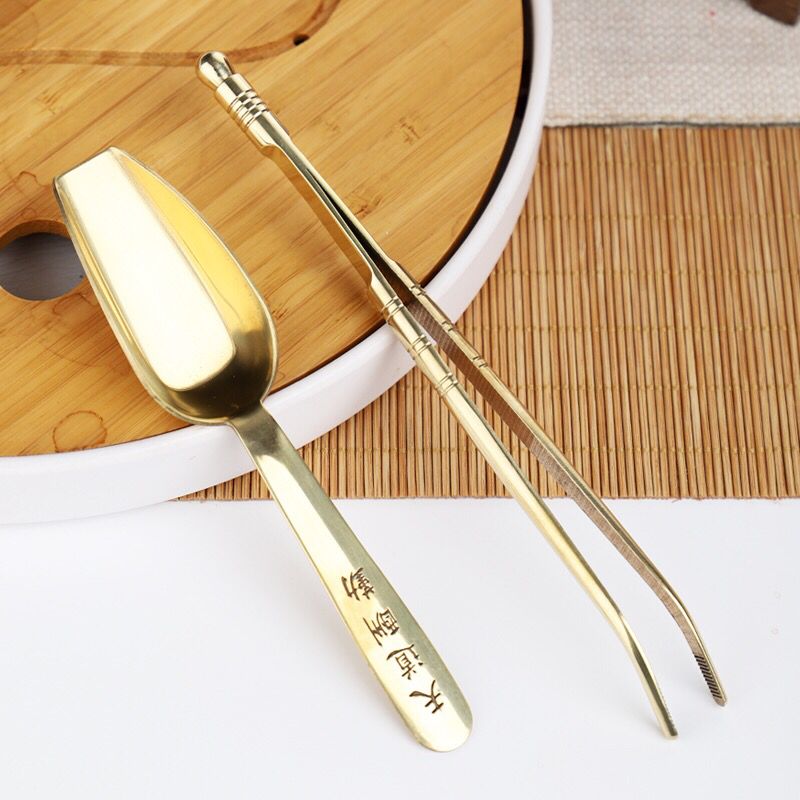 Tea Spoon Tea Pinch Kung Fu Tea Accessories Solid Wood Made Brass Tea Spoon Clips Tea Tea Tea Cup Tweezers Matching-Taobao