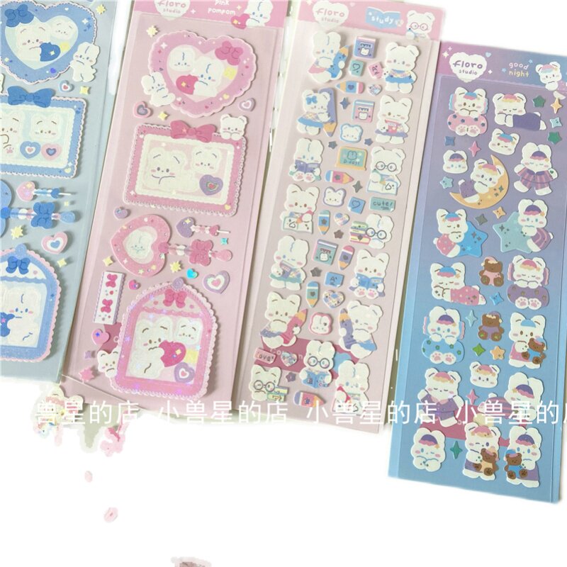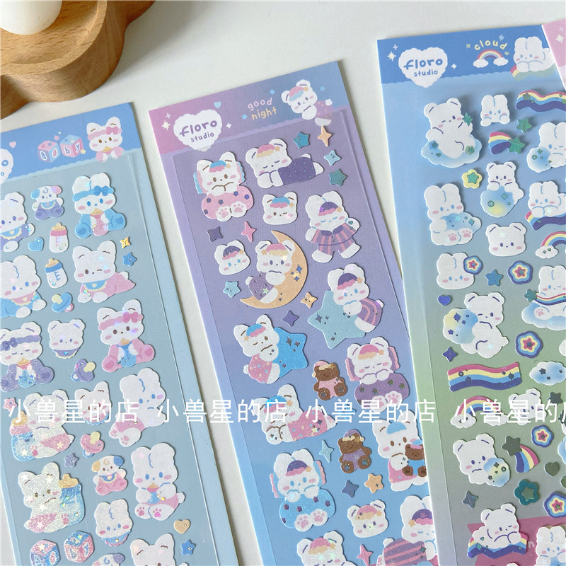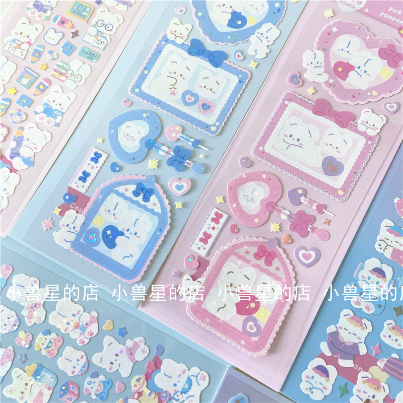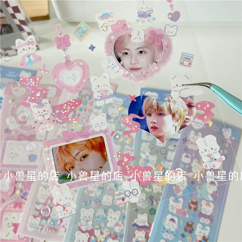 ins cute cartoon bear milk bottle love photo frame sticker laser hot silver goo card sticker decoration hand account material