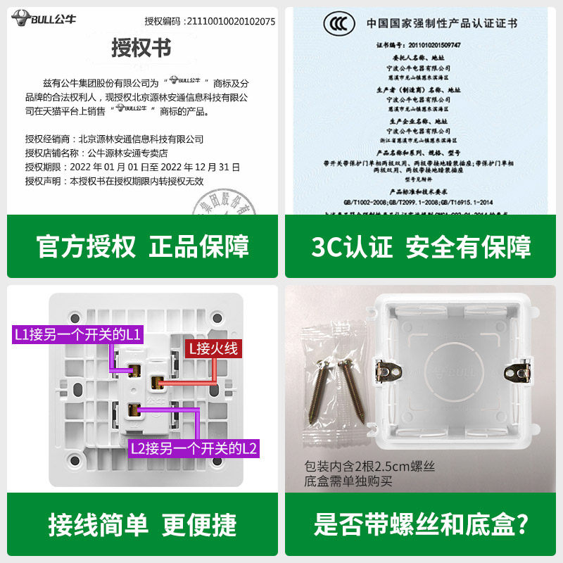 Bull Open Double Cut Switch Panel Home 86 Concealed wall One single link 16a An electric lamp switch G12 white