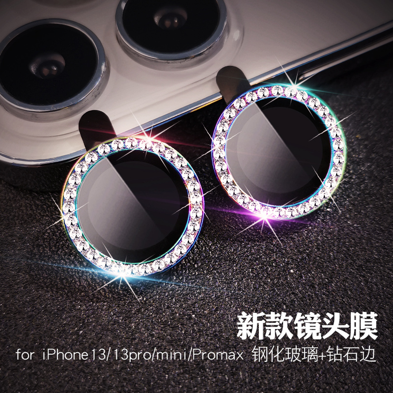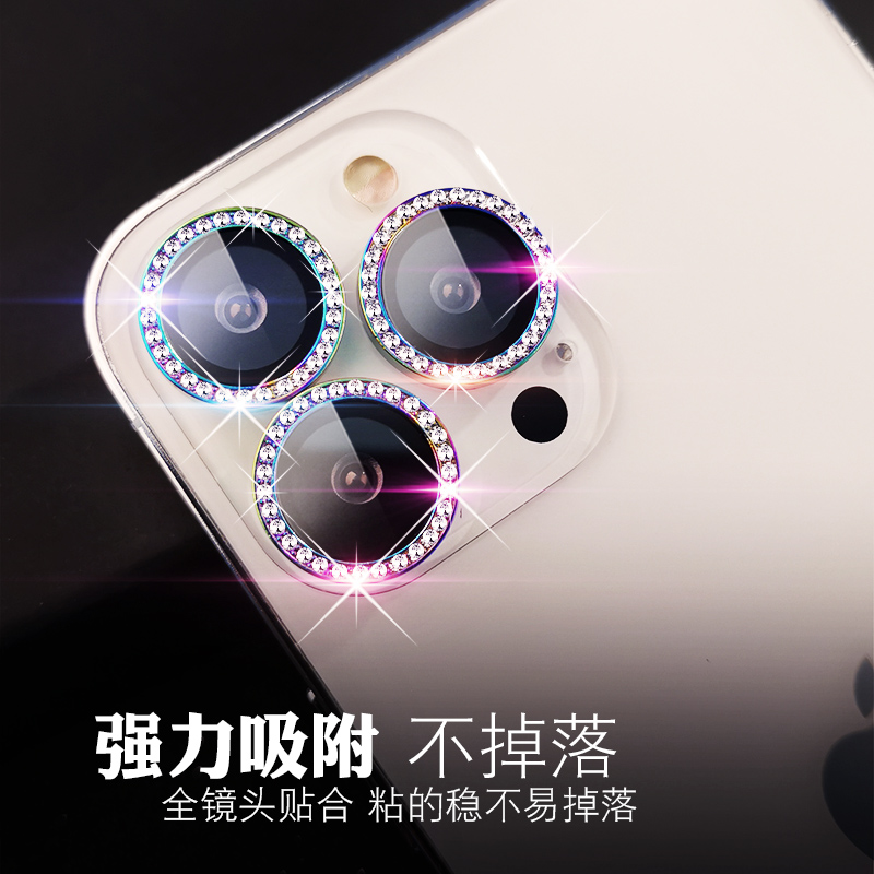 Applicable to Apple 13 lens film diamond-encrusted iPhone13promax camera colorful rhinestone protection ring women's all-inclusive diamond 13max shining lens sticker camera cover 13pro