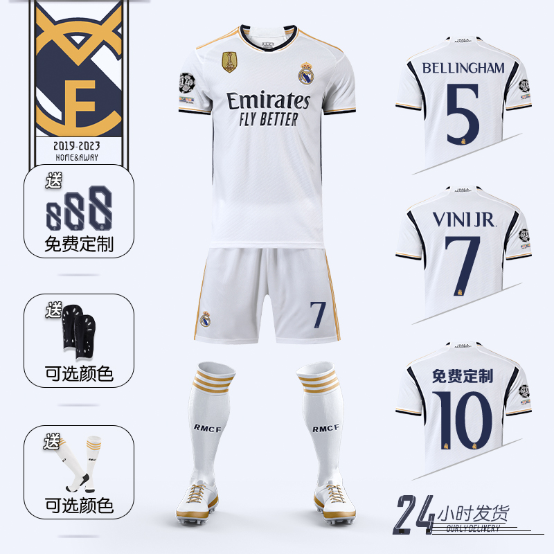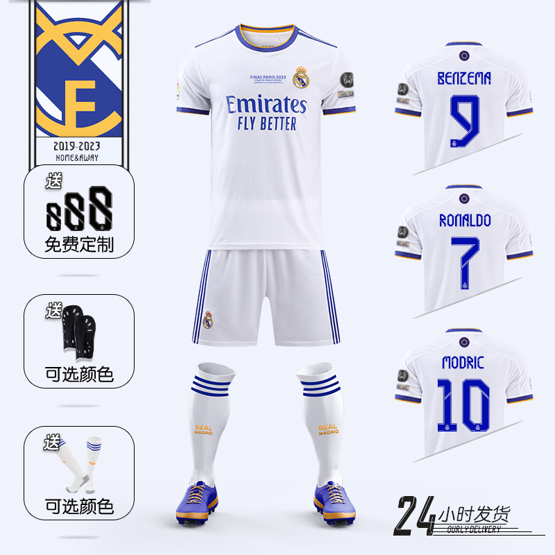 Real Madrid jersey C Ronaldo No. 7 Valverde football suit suit men and women home and away game training suit custom children