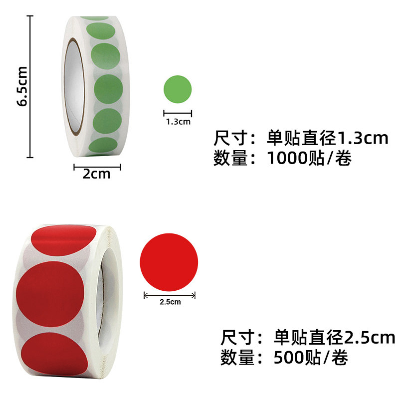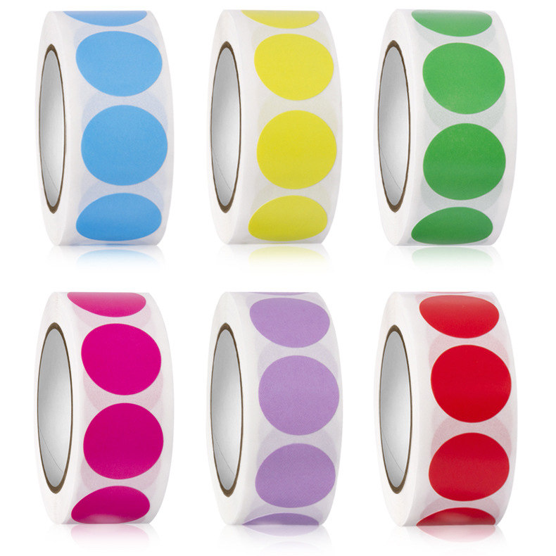 Color Small Round Dot Mark Classification Ticks Roll Mounted Self-Adhesive Blank Color Adhesive Labels Stickers Round Multicolored Coded Logo Roll Fit Classification Label Red Yellow Blue Green Pink Purple Black Spot